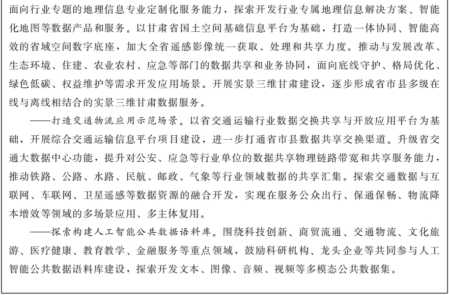 £¨Ê®Ò»£©½¨É蹫¹²Êý¾ÝÁ÷ͨʹÓûù´¡ÉèÊ©¡£Æ¾Ö¤¹ú¼ÒÕþ²ßÎļþ»®¶¨£¬Ì½Ë÷¶¼»á¡¢Ð¡ÎÒ˽¼ÒµÈ¿ÉÐÅÊý¾Ý¿Õ¼ä½¨É裬ÃãÀø½¨ÉèÊýÁªÍø¡¢Êý¾ÝÔª¼þµÈÊý¾ÝÁ÷ͨ»ù´¡ÉèÊ©£¬Ôö½øÊý¾Ý¸ßЧ±ãµ±¿ÉÐÅÁ÷ͨ¡£Î§Èƹ¤ÒµÖÆÔì¡¢ÏÖ´úũҵ¡¢Ò½ÁÆ¿µ½¡¡¢ÂÌÉ«µÍ̼µÈÖØµãÐÐÒµÁìÓò£¬Ì½Ë÷Êý¾Ý»ù´¡ÉèÊ©ÊÖÒÕõè¾¶ÊÔÑ飬Ϊ¹ú¼ÒÊý¾Ý»ù´¡ÉèÊ©½¨ÉèТ˳¡°¸ÊËà¼Æ»®¡±¡£Íƶ¯Ê¡ÄÚÊý¾Ý»ù´¡ÉèÊ©¹æÔò¡¢ÖÎÀí¡¢±ê×¼ÏàͨÏàÈÝ£¬Ôö½ø¿çÇøÓò¿ç²ã¼¶ÉèÊ©»¥Áª¡¢ÄÜÁ¦»¥Í¨£¬ÊµÏÖÊý¾ÝʹÓ÷½·¨Ïò¹²Ïí»ã¾ÛºÍÓ¦Ó÷þÎñÄÜÁ¦²¢ÖØµÄÆ«Ïòת±ä¡£
