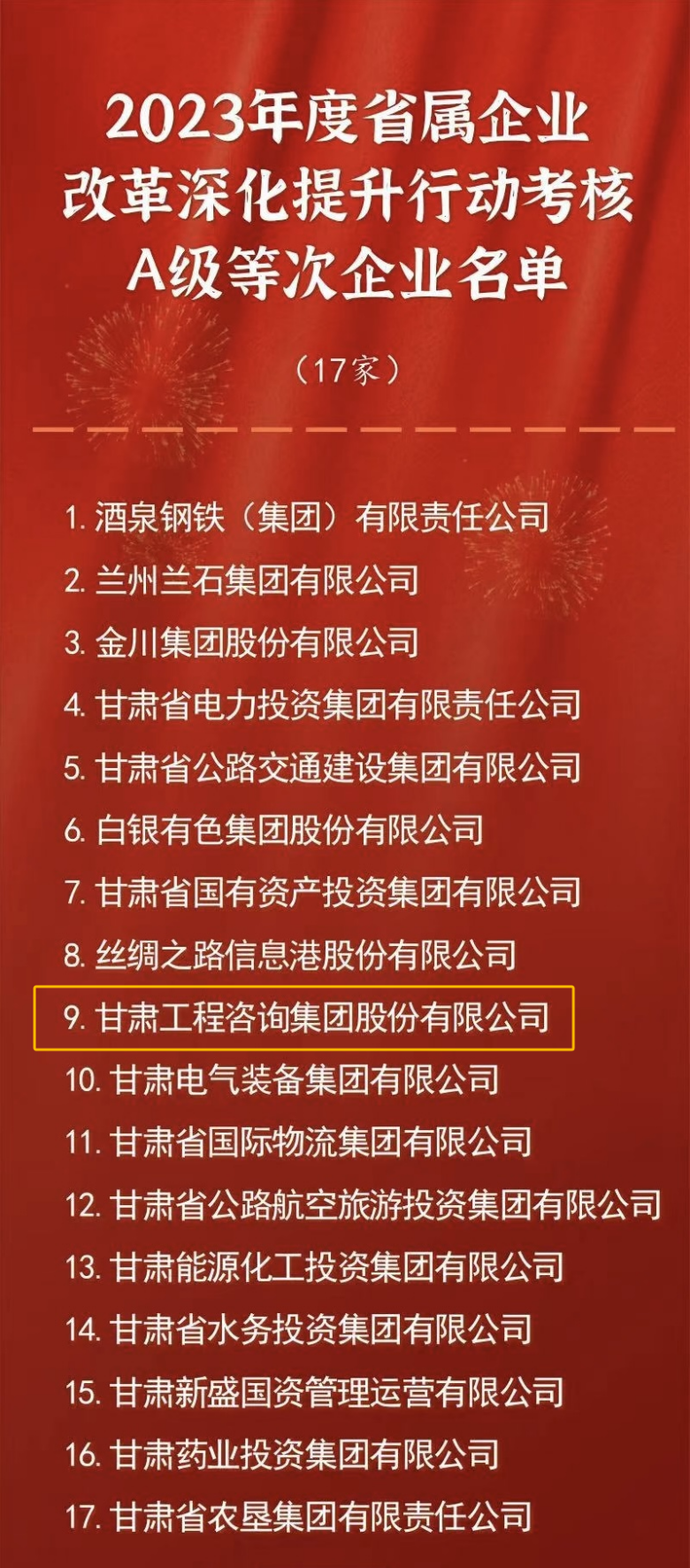 2023年度省属企业刷新深化提升行动审核A级等次企业名单