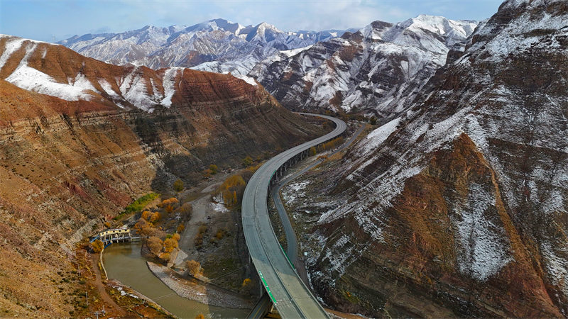 冬日的西营河12号特大桥宛如一条银龙,蜿蜒于银装素裹的山峦之中。路,走向更远的远方。
