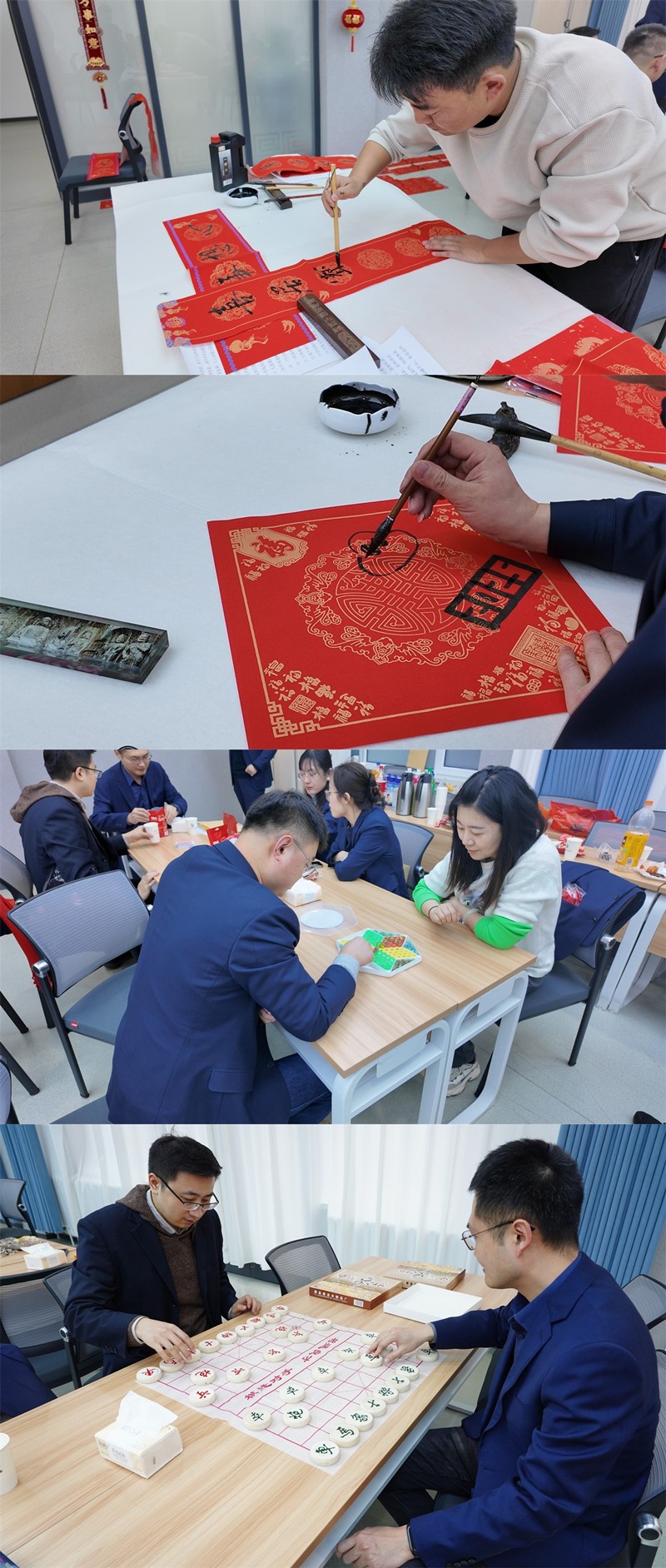 棋牌类游戏区,博弈双方凝思屏气、见招拆招、运筹帷幄、乐在“棋”中。春联福字区,长桌排开、翰墨飘香,喜迎新春的气氛扑面而来。一声声叫好、一副副春联、一个个“福”字,承载着各人对新年的优美期盼与祝福。