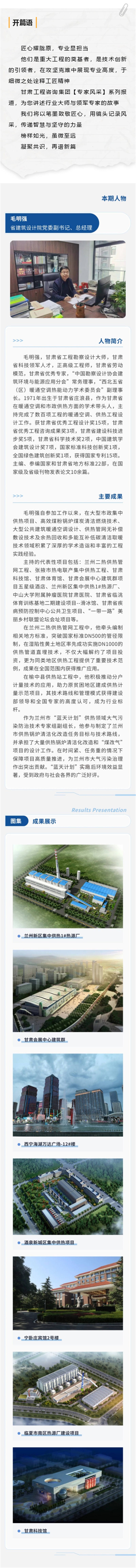 《专家风范》专题报道① | 甘肃省工程勘探设计巨匠毛明强:深耕热能工程,引领绿色供热,以立异手艺守护碧水蓝天