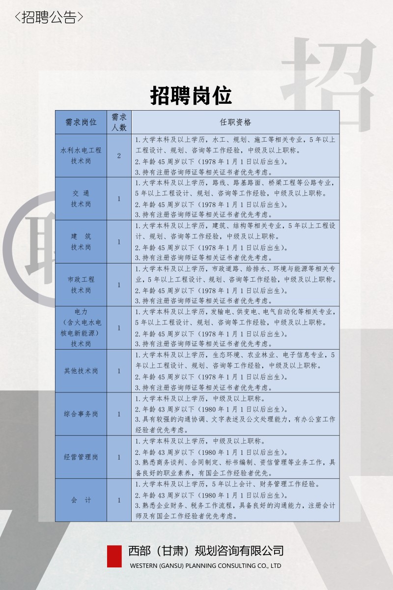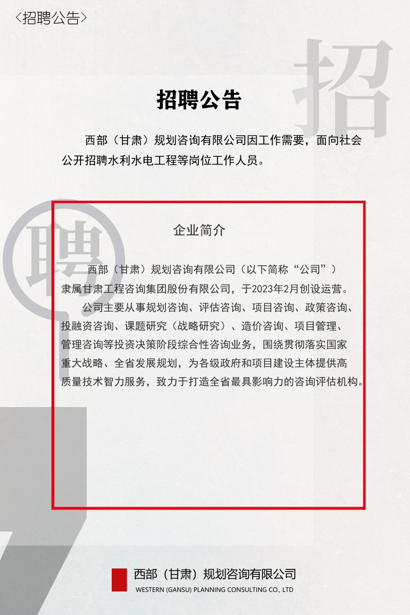 西部(甘肃)妄想咨询有限公司2023年招聘通告