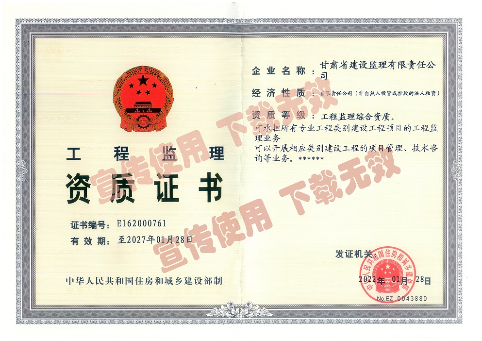 千淘万漉虽辛勤,吹尽黄沙始到金。2月17日,甘肃省建设监理有限责任公司正式取得工程监理综合资质,成为甘肃省本土唯一拥有综合资质的监理企业。