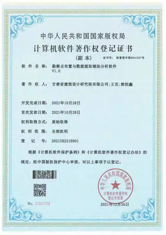 ¿ËÈÕ£¬´Ó¹ú¼Ò°æÈ¨¾Ö´«À´ºÃÐÂÎÅ£¬Æ¾Ö¤¡¶ÅÌËã»úÈí¼þ±£»¤ÌõÀý¡·¡¶ÅÌËã»úÈí¼þÖø×÷Ȩ¹ÒºÅ²½·¥¡·»®¶¨£¬¸ÊËàÊ¡ÐÞ½¨Éè¼ÆÑо¿ÔºÓÐÏÞ¹«Ë¾¹¤³Ì¿±Ì½ÔºÑз¢µÄ¡°¿±Ì½µã°²ÅÅÓëÊý¾ÝÌáÈ¡¸¨ÖúÆÊÎöÈí¼þ¡±£¬¾×¨¼ÒÉóºË£¬ÊÚÓèÅÌËã»úÈí¼þÖø×÷Ȩ¹ÒºÅÖ¤Êé¡£