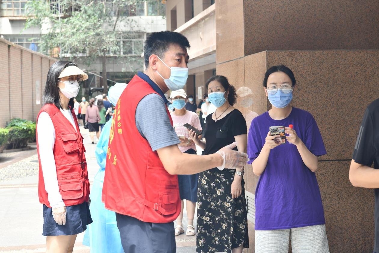 中中午分,自愿者们顶着38℃的高温,穿梭在小区核酸检测收罗现场、小区收支口,凭证核酸检测要求,指导待测职员佩带好口罩、坚持清静距离、有序排队。他们嗓子哑了也顾不上喝一口水,身上的衣服已不知被汗水浸湿了几多次,却始终没有一小我私家叫苦叫累,依然起劲奋战在核酸采样第一线,用现实验动展示“贡献、友好、相助、前进”的自愿精神,诠释国企继续。