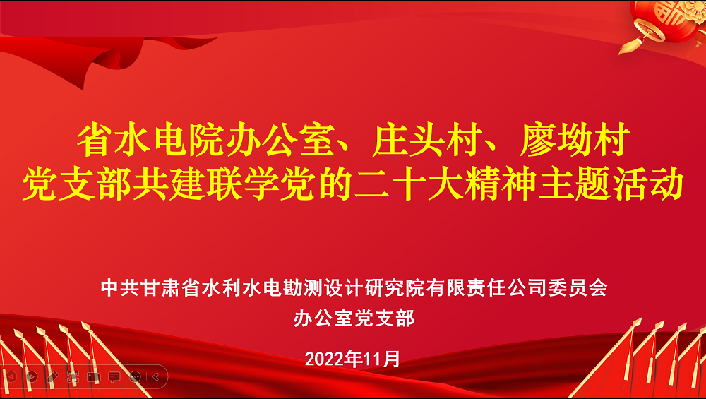 ΪһÁ¬Ôö½øµ³µÄ¶þÊ®´ó¾«Éñѧϰ¹á³¹×ßÉî×ßʵ£¬Ê¹µ³µÄ¶þÊ®´ó¾«Éñ½ø´åÈë»§¡¢ÉîÈëÈËÐÄ£¬11ÔÂ22ÈÕ£¬¸ÊËàʡˮÀûË®µç¿±Ì½Éè¼ÆÑо¿ÔºÓÐÏÞÔðÈι«Ë¾°ì¹«ÊÒµ³Ö§²¿Óë°ï·ö´åÎ÷·åÇø×¯Í·´åµ³Ö§²¿¡¢ÁÎÛê´åµ³Ö§²¿¿ªÕ¹¹²½¨ÁªÑ§µ³µÄ¶þÊ®´ó¾«ÉñÖ÷ÌâÔ˶¯¡£
