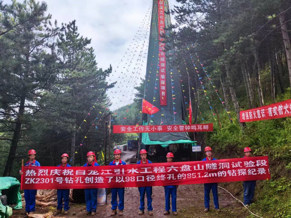 克日,省水电设计院勘探公司在白龙江引水工程六盘山长隧洞试验段项目ZK2301钻孔施工中,以98mm口径顺遂完成851.2m钻进使命,刷新了水电设计院在该口径终孔钻探原575m后最深纪录,极大地提振了干部职工的雄心壮志。
