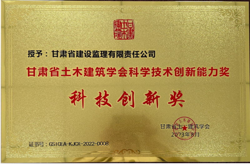 喜报|省建设监理公司荣获“甘肃省土木修建学会科技立异奖”