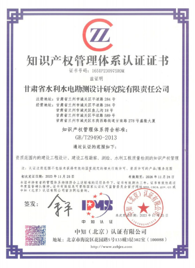 ¿ËÈÕ£¬Ê¡Ë®µçÉè¼ÆÔºË³Ëìͨ¹ý¡¶Æóҵ֪ʶ²úȨÖÎÀí¹æ·¶¡·(¹ú¼Ò±ê×¼GB/T 29490-2013)µÄÈÏÖ¤ÆÀÉóÊÂÇ飬ȡµÃ¡¶ÖªÊ¶²úȨÖÎÀíϵͳÈÏÖ¤Ö¤Êé¡·£¬±ê¼Ç×ÅÔÚ֪ʶ²úȨ´´Á¢¡¢ÔËÓá¢ÖÎÀíºÍ±£»¤·½ÃæÂõÉÏÐĄ̂½×¡£