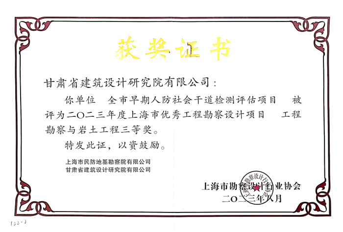 本次获奖项目由省修建设计院检测中心团结上海市民防地基勘探院有限公司,就兰州市七八十年月人防社会干道开展检测判断。项目获奖,彰显了省修建设计院在工程勘探设计和检测判断方面的立异能力和手艺水平,也是对公司检测营业板块整体运营效率、综合服务能力的再一次一定。