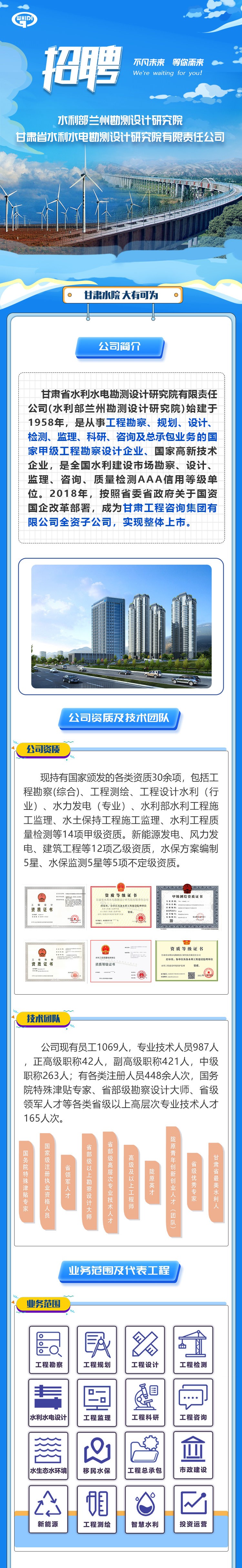 甘肃省水利水电勘探设计研究院有限责任公司招聘通告
