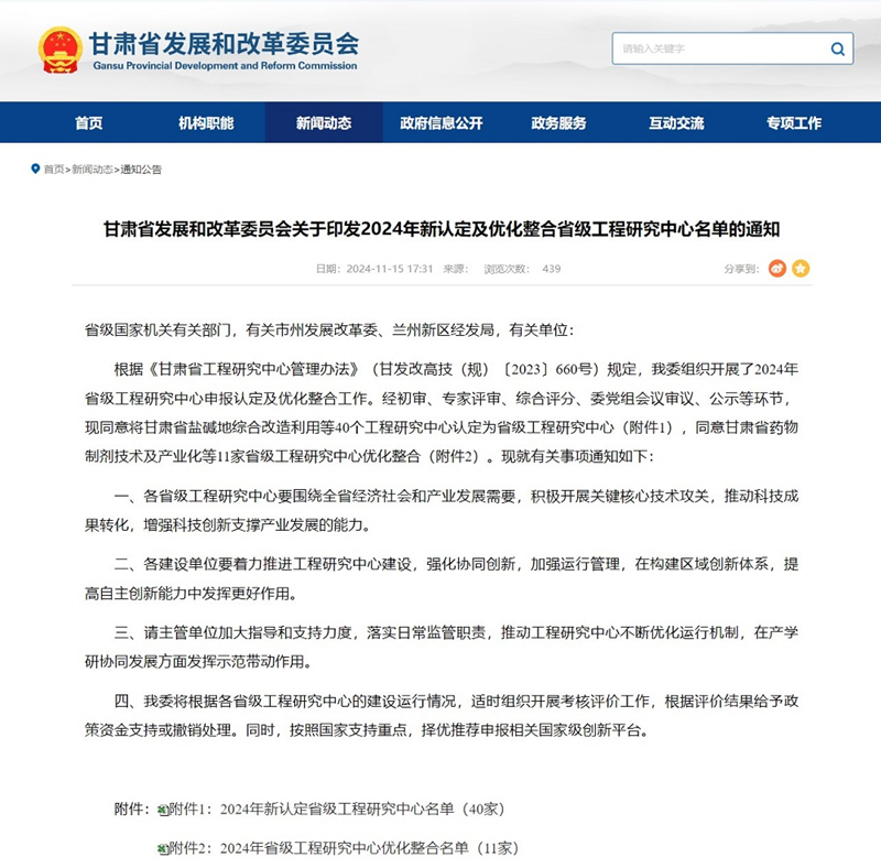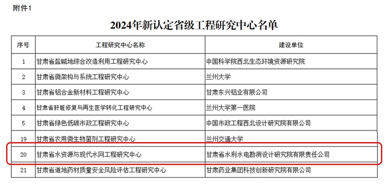 ¿ËÈÕ£¬Ê¡Éú³¤ºÍË¢ÐÂίԱ»áÐû²¼¡¶2024ÄêÐÂÈ϶¨¼°ÓÅ»¯ÕûºÏÊ¡¼¶¹¤³ÌÑо¿ÖÐÐÄÃûµ¥¡·£¬Ê¡Ë®µçÉè¼ÆÔºÉ걨µÄ¡°¸ÊËàʡˮ×ÊÔ´ÓëÏÖ´úË®Íø¡±ÀֳɻñÅúÁ¢Ïî¡°Ê¡¼¶¹¤³ÌÑо¿ÖÐÐÄ¡±£¬±ê¼Ç׏«Ë¾ÔÚË®Àû¹¤³Ì¿ÆÑÐÆ½Ì¨½¨Éè·½ÃæÈ¡µÃÁËÖØ´óÍ»ÆÆ¡£