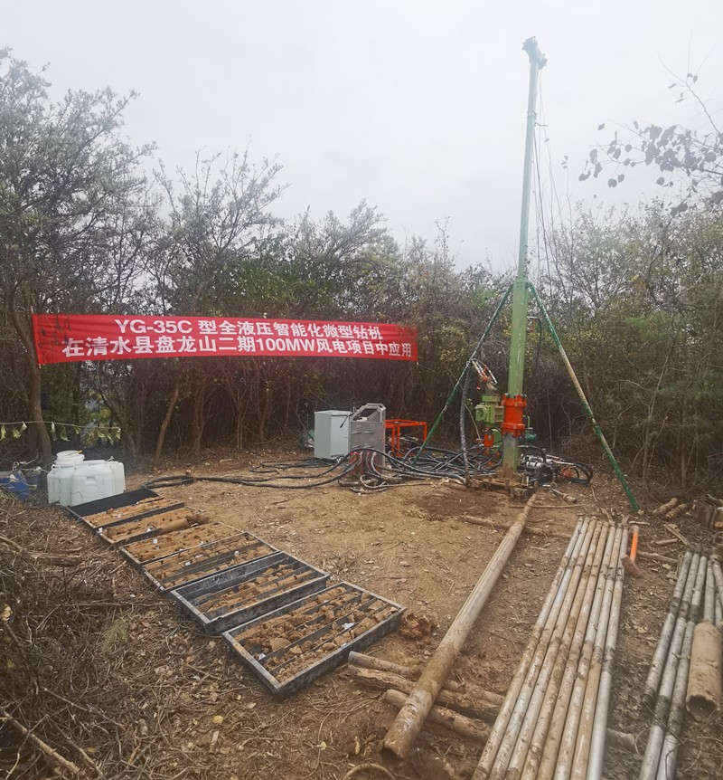 日前 ,省水电设计院研发的YG-35C型全液压智能化微型钻机 ,在清水县盘龙山二期100MW风电项目中乐成应用。