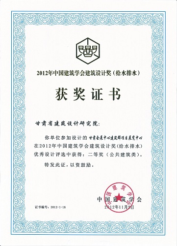 2012年中国修建学会设计奖甘肃会展中心(给排水)
