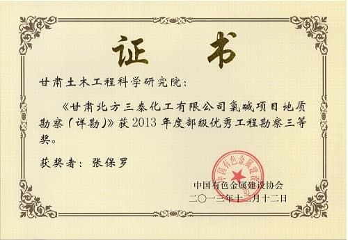 优异工程勘探三等奖
