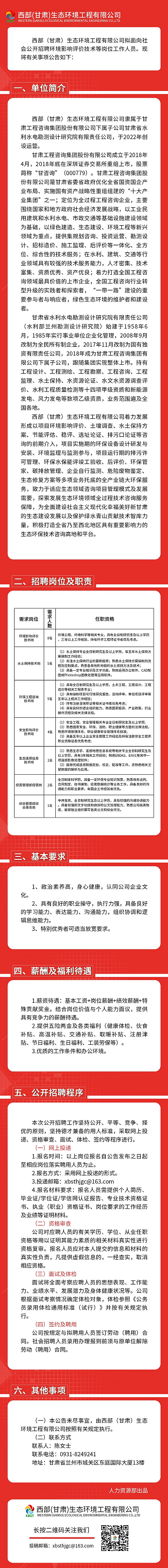 甘肃省水利水电勘探设计研究院有限责任公司——西部(甘肃)生态情形工程有限公司招聘通告